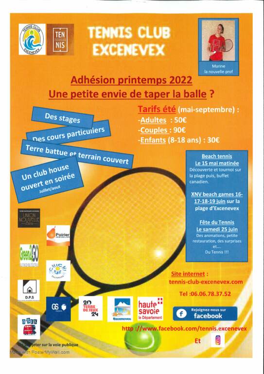 Cette année le tennis club d'Excenevex,vous propose une formule été qui vous permettra de jouer à votre guise en profitant de nos installations comme un adhérent,en pouvant réserver vos heures depuis votre téléphone mobile sur l'application Ten'up et profiter également de notre terasse ouverte tous les soirs de 18h30 à 20h30 dès le 1er juillet.