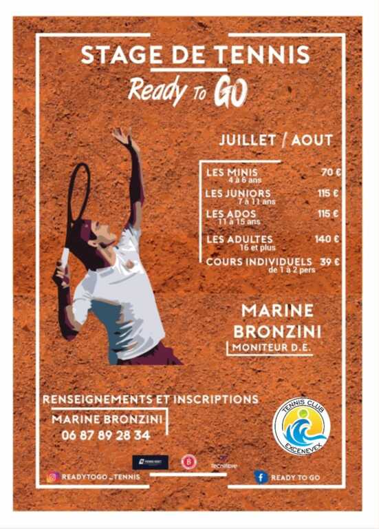 Sur ce lienhttps://readytogotennis.com/ vous aurez: - Les créneaux et dates des stages. Les tarifs. La possibilté de vous inscrire en ligne. - A très bientôt !!!!!
